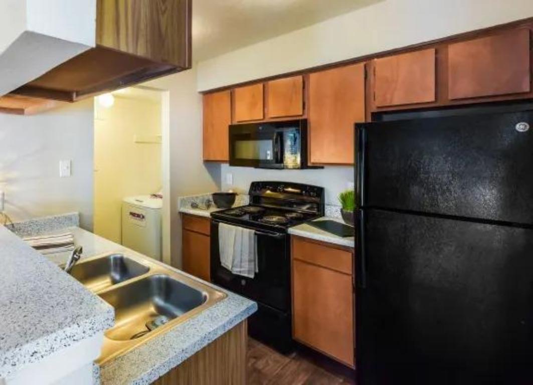 These apartments include a living room, dining area, and a kitchen with a dishwasher, built-in microwave, refrigerator, and a disposal. There is wood-style flooring in the kitchen, bathroom(s), and carpet flooring through out the rest of the unit. Features include central A/C, central heat, electronic thermostat, fireplace, security alarm, and a patio/balcony with storage. Washer and dryer connections in unit. Community amenities include a bbq/picnic area, on-site maintenance, playground, laundry facilities, swimming pool, business center, fitness center, and spanish speaking staff. Pets are welcome. Off-street lot parking available. Less than a five minute drive to Interstate 635. PHOTOS ARE AN EXAMPLE OF SIMILAR UNITS WITHIN THE BUILDING, ACTUAL UNIT MAY VARY. ***Availability and pricing is real-time and can change daily and vary by lease term***
