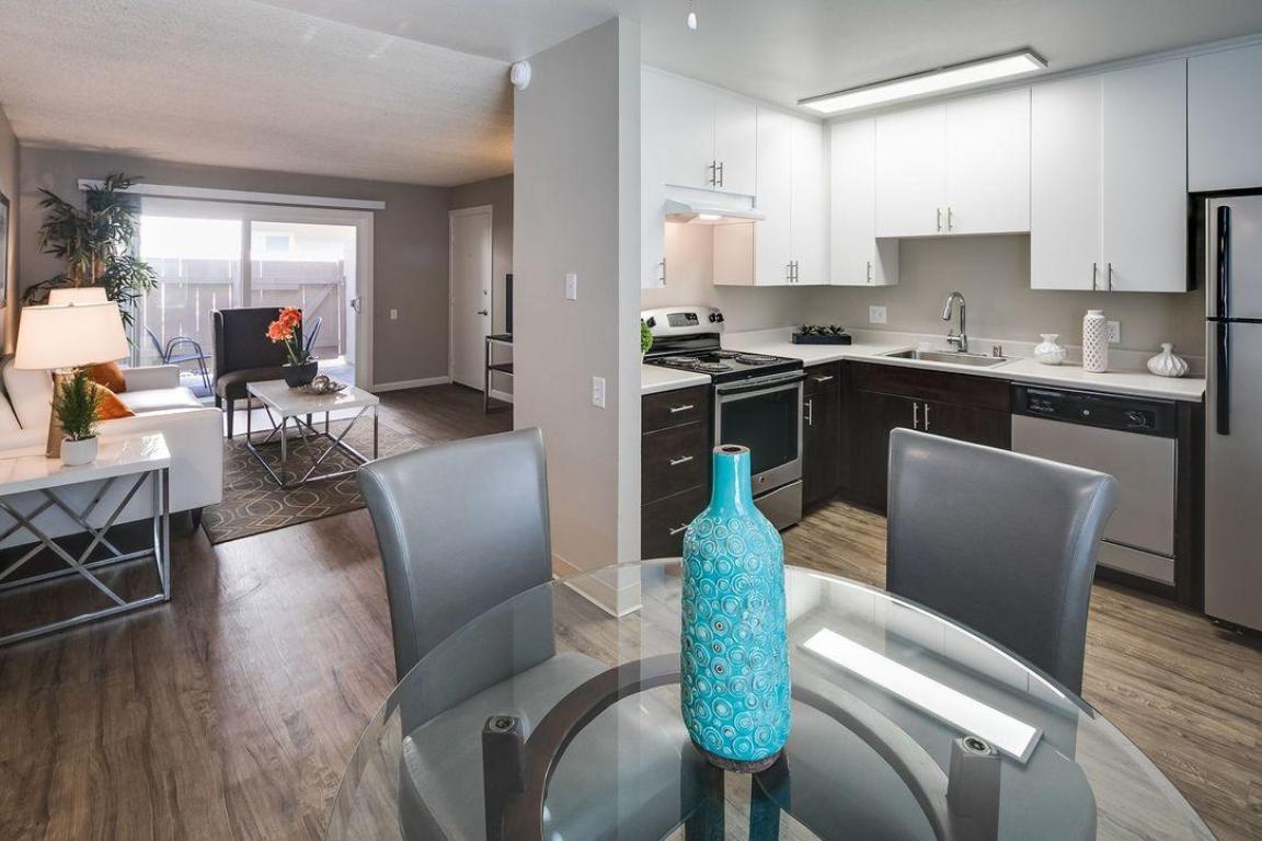 These apartments and townhouses located in a rental community in San Diego features one, two, and three bedroom floor plans, a fully equipped kitchen with full appliance package, a dishwasher, vinyl hardwood-style and carpeted flooring, a living room and a dining area. Enjoy the comforts of central A/C and heat, ceiling fans, large closets, private patio spaces, and assigned off-street parking. The community offers a pool with a sundeck, on-site laundry facilities, courtesy night patrol, and on-site management and maintenance teams. This community is also wheelchair accessible, deleaded and cat friendly. Located within a five minute drive of I-805. PHOTOS ARE AN EXAMPLE OF SIMILAR UNITS WITHIN THE BUILDING. ACTUAL UNIT MAY VARY. ***Availability and pricing is real-time and can change daily and vary by lease term***