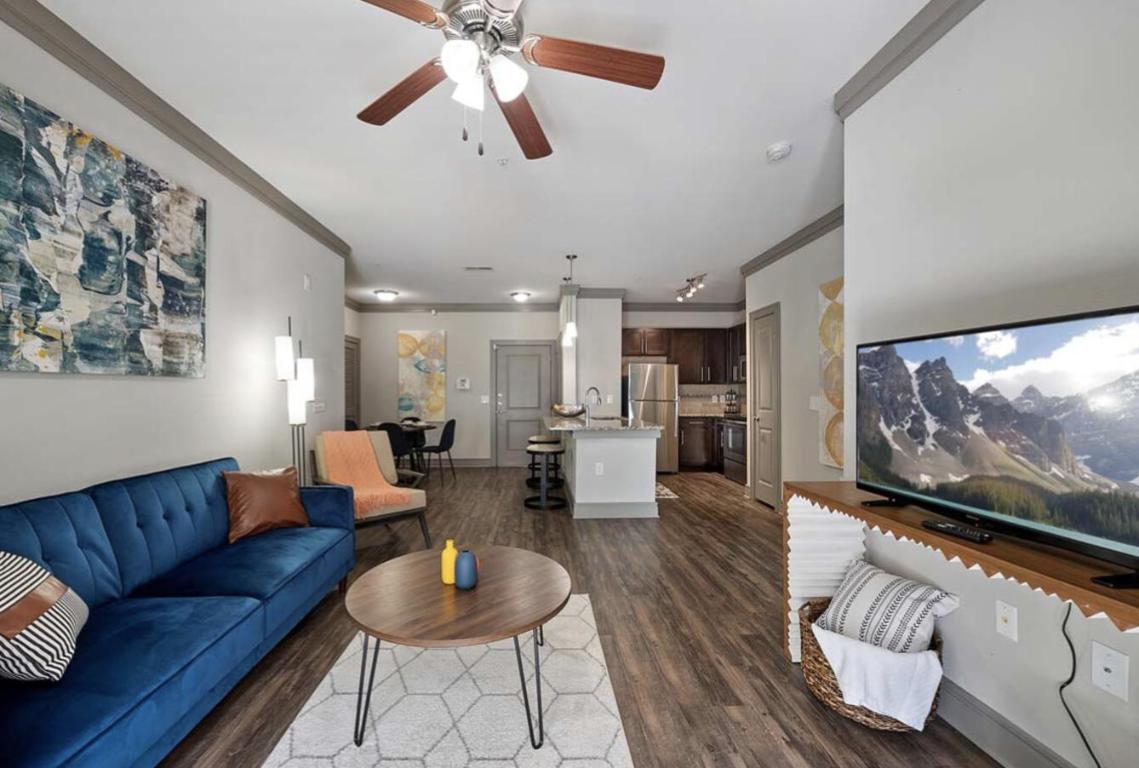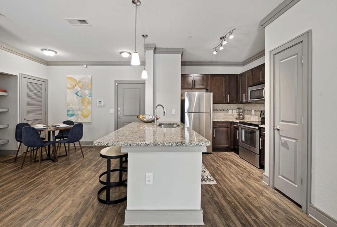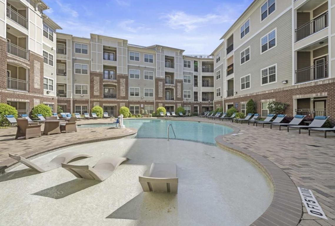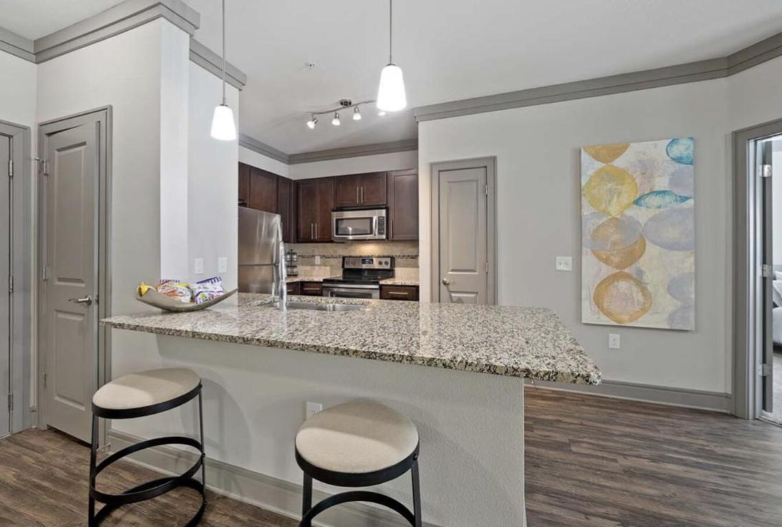 This apartment has hardwood in the living area, the kitchen, and the bathroom(s) and carpet in the bedroom(s). The kitchen has stainless steel appliances, granite counter-tops, under-mount sink, tile back-splash, custom cabinetry, and a dishwasher. There is central AC and heat and in-unit laundry. Unit amenities include glass showers and rain shower heads, walk-in closets, tall ceilings, crown molding, plantation blinds, ceiling fans, and pendant lighting. Select units have alarm systems and private patio/balcony. Wheelchair access. Community amenities include pool, grilling area, elevator, fitness center, covered pavilion, TV lounge, game room, theater room, business center, mail kiosk, coffee and tea bar, valet waste, and professional management. Pets welcome. Off-street parking available. A seven minute drive to Interstate 40. ***Availability and pricing is real-time, can change daily, and varies by lease term*** ****PHOTOS ARE AN EXAMPLE OF SIMILAR UNITS WITHIN THE BUILDING, ACTUAL UNIT MAY VARY.****