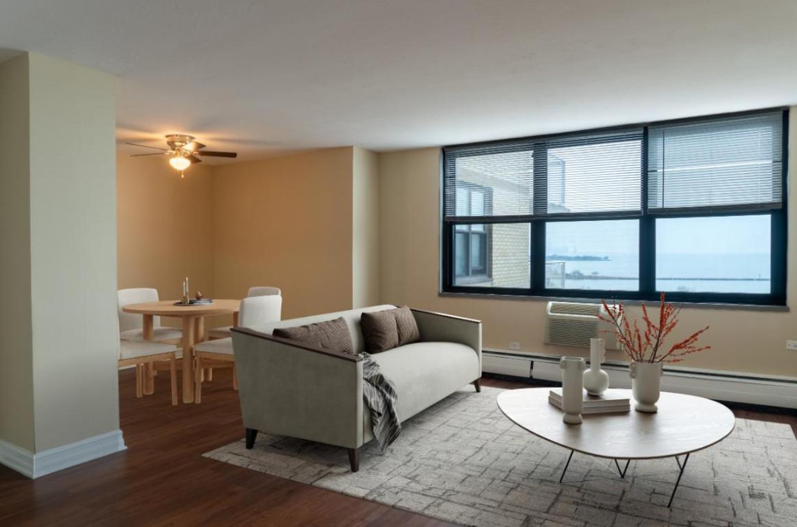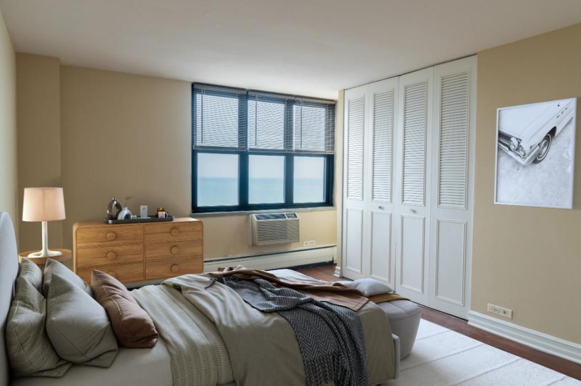 This apartment located in a rental community in Chicago, IL (South Shore) features Studio, 1, and 2 bedroom floor plans. Apartment homes feature oversized windows with lake and skyline views, walk-in and wall-to-wall closets, and custom 42? maple kitchen cabinets, with modern convenience like dishwashers and breakfast bars in the kitchen. Units include air conditioning, ceiling fans, and ceramic tile flooring, along with a mix of plush carpeting and wood flooring. Every home features a private balcony (per plan). Enjoy the comforts of Air Conditioning, with a 24-hour laundry center with Wi-Fi and the convenience of assigned garage parking, a door attendant, and an electronic entry system. The building also provides 24/7 package pick-up lockers, additional storage, and bicycle storage. The community offers residents a variety of social and wellness amenities, including a 24-hour fitness center, a business center with Wi-Fi, and a community room. Residents can also participate in community "Meet and Greet" parties. The property is a 100% smoke-free community and offers no security deposit options. This community is also pet-friendly, welcoming up to two pets per apartment (cats and dogs). Located in South Shore, the property is just steps from Jackson Park, sandy beaches, and lakefront trails, with easy access to the CTA express bus and Metra train service. PHOTOS ARE AN EXAMPLE OF SIMILAR UNITS WITHIN THE BUILDING. ACTUAL UNIT MAY VARY. Availability and pricing is real-time and can change daily and vary by lease term.