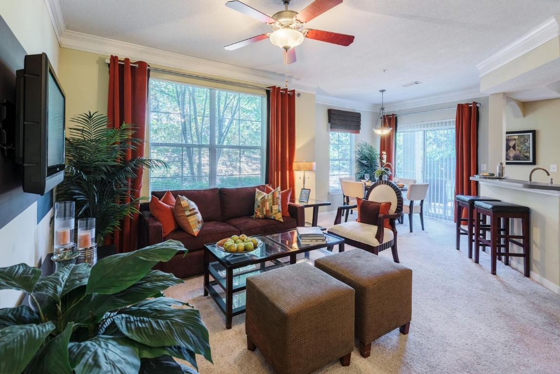 This apartment located at Deerfield Village in Alpharetta features oversized one-, two-, and three-bedroom floor plans designed for those who expect the best in suburban luxury and expansive quality. Apartment homes offer a gourmet kitchen featuring under-mounted sinks, walk-in pantries, and a choice of premium stainless steel or sleek black appliances. Units include wood laminate flooring, fireplaces for added comfort, and the convenience of a full-size or stackable washer and dryer. Every residence is a retreat of comfort and style, featuring maple cabinetry, ceiling fans with designer lighting, and exterior storage closets, with select homes offering serene pool or wooded views and private yard spaces. Enjoy the comforts of two resort-style swimming pools with cabanas and a state-of-the-art fitness center featuring a dedicated aerobic room and a relaxing sauna. For an active lifestyle, the property offers a multi-functional sports complex, including a soccer court, a tennis court, and a playground. The community offers a variety of specialized social and professional spaces, including a clubroom with a test kitchen and billiards, a resident business center, and a fountain courtyard. For added convenience, the gated property provides car care facilities, internet access throughout the community, and garage storage options. Residents benefit from a prime Alpharetta location with easy access to the areas premier shopping, dining, and major transport hubs, all within a warm and welcoming community setting. This community provides a balanced lifestyle of convenience and relaxation in an elevated Alpharetta enclave, where renovated interiors meet an active residential experience. PHOTOS ARE AN EXAMPLE OF SIMILAR UNITS WITHIN THE BUILDING. ACTUAL UNIT MAY VARY. Availability and pricing is real-time and can change daily and vary by lease term.