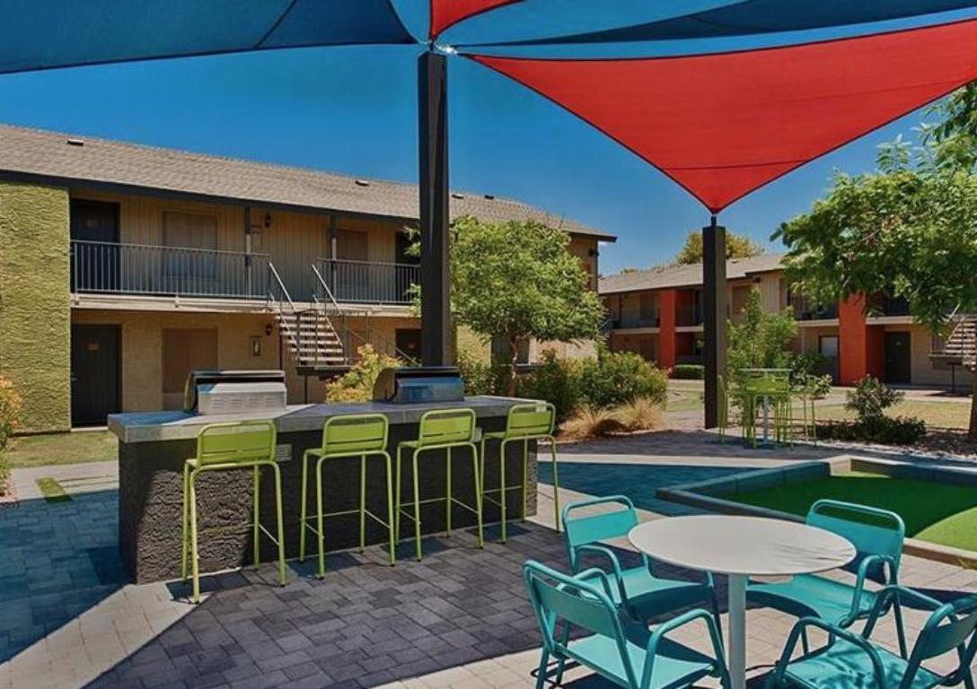 This apartment located in a rental community in Mesa features one, two and three bedroom floor plans, walk-in closets, carport, dishwashers, air conditioning and heating , washer and dryer, gorgeous vinyl flooring, full appliance package, high-speed internet access, dining room or eat-in kitchen, balcony, deck, or patio with extra storage, newly fully renovated apartment homes, and pre-installed Wi-Fi with the first month free from Cox. Community offers bocce ball, covered parking, package receiving, corn hole, courtesy patrol, onsite dog park, pets are welcome, BBQ and picnic area, 24-hour fitness center, two sparkling swimming pools, and outdoor fire pit and lounge. This community is also deleaded and pet friendly. Located within 5-10 minutes of Webster Elementary School, Pioneer Park, Gabbys Sports Bar and Grill. PHOTOS ARE AN EXAMPLE OF SIMILAR UNITS WITHIN THE BUILDING. ACTUAL UNIT MAY VARY. ***Availability and pricing is real-time and can change daily and vary by lease term***