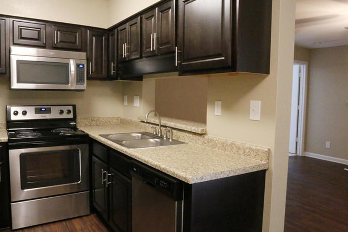 This apartment features a living room, a dining room, and a newly updated galley kitchen with new cabinetry, ample counter space with faux granite countertops, and full stainless steel appliances with a dishwasher and built-in microwave. There is wood flooring throughout the majority of the space, with carpeting present in the bedroom, and ceramic tiling in the bathroom. The unit also features numerous ceiling fans, gorgeous pendent lighting, attractive crown molding, a fireplace, central heating and air-conditioning, and an in-unit washer and dryer. Community amenities include a twenty-four hour state-of-the-art fitness center, a junior Olympic sized pool with expansive sundeck, a tennis court, a poolside picnic area with barbecue grills and stone fire pit, a resident clubhouse with business center, lounge area, and complimentary coffee bar, beautifully landscaped grounds with walking trails, and on-site management and maintenance teams. Pets are welcome. Wheelchair accessible building. Lot parking is available on a first come, first serve basis. This apartment is a five minute drive from Interstate 40. ***Availability and pricing is real-time, can change daily, and varies by lease term*** ****PHOTOS ARE AN EXAMPLE OF SIMILAR UNITS WITHIN THE BUILDING, ACTUAL UNIT MAY VARY.****