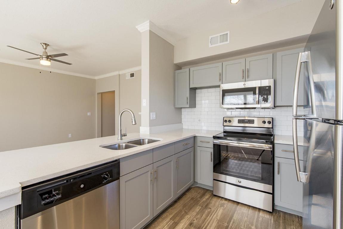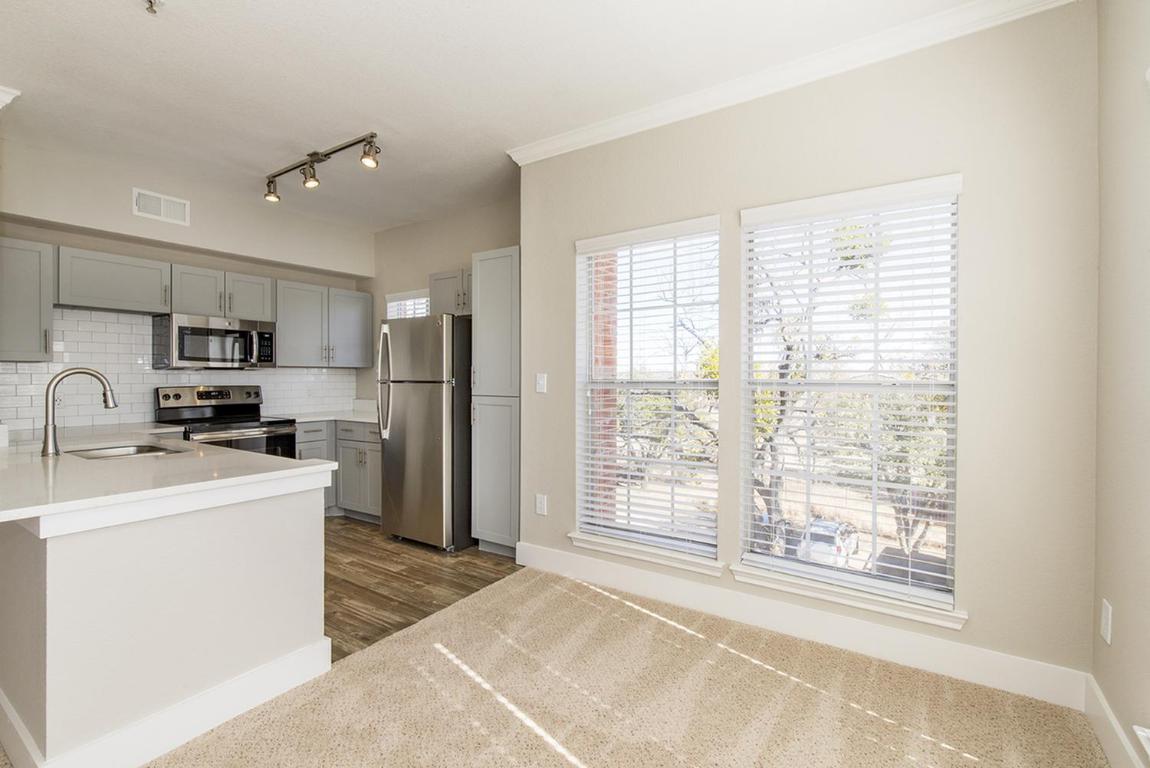 These apartments feature an open living room, dining room, and a kitchen with a dishwasher. There is carpeting in the living room, dining room, bedroom(s), tile flooring in kitchen and the bathroom(s). The bedroom(s) have a closet and the bathroom(s) include a soaking tub. Features central A/C and central heat. Select units include custom hardware cabinets, stainless steel appliances, wood floors, garden tubs, and a private balcony/patio. Cable ready. Full-size washer/dryer connections. Community amenities include a swimming pool, laundry facility, and limited access gates. Pets are welcome. Off-street unassigned lot parking included in the rent. Covered parking available. Less than a ten-minute drive to I-35W. PHOTOS ARE AN EXAMPLE OF SIMILAR UNITS WITHIN THE BUILDING, ACTUAL UNIT MAY VARY. ***Availability and pricing is real-time and can change daily and vary by lease term***