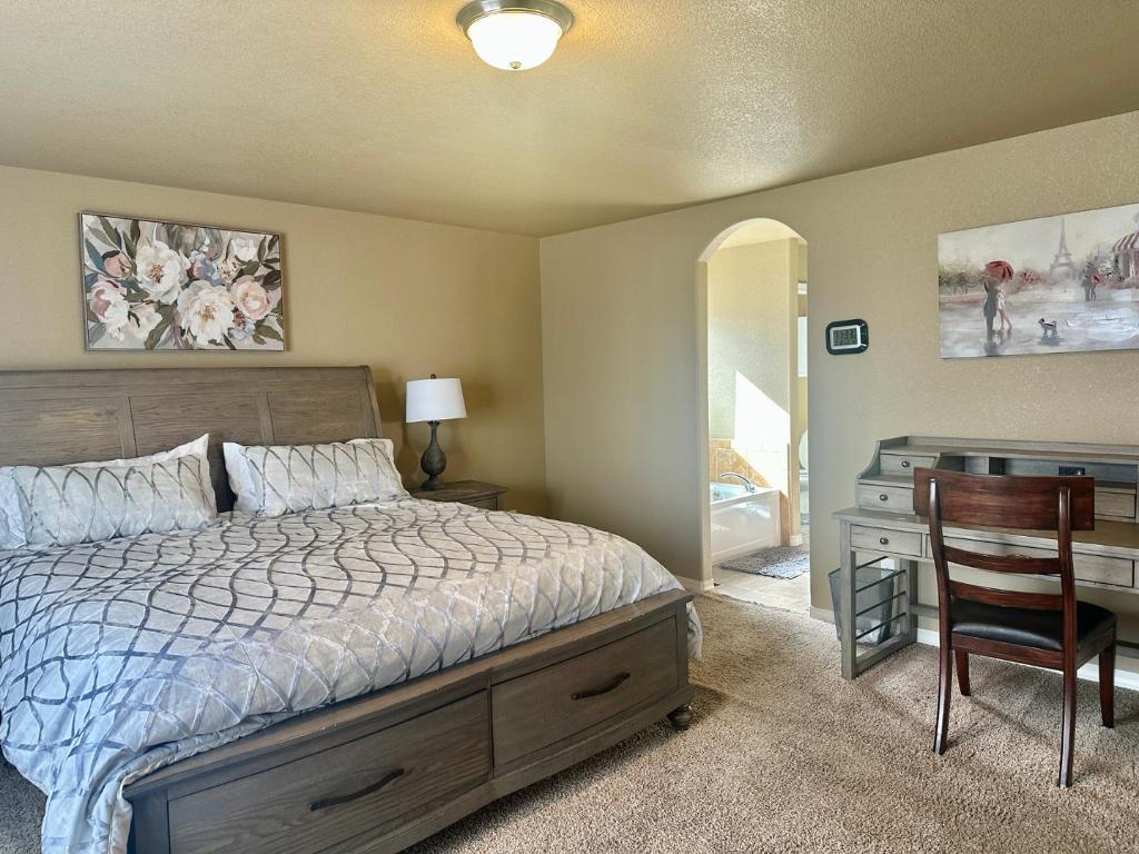 Beautiful 4 bedroom home in Mule Deer Crossing. As you walk into this 3800+ square foot home, you are greeted with 9 ft. ceilings and wide hallways. There is an office with french doors off of the main entry. Enjoy gatherings in the spacious living room with LVP flooring, beautiful built in shelving and electric fireplace. The living room opens up into the large kitchen with stainless appliances, cherry wood cabinets, large pantry and a walk-out to fenced backyard. Upstairs you will find the super spacious primary bedroom with 5 piece bath and two other bedrooms, laundry room, full bath and a wonderful loft area. The basement is fully finished with new LVP flooring and a wet bar. Tons of storage in this home. Close to Peterson AFB, shopping, dining, entertainment and schools! A PROSPECTIVE TENANT HAS THE RIGHT TO PROVIDE TO THE LANDLORD A PORTABLE TENANT SCREENING REPORT, AS DEFINED IN SECTION 38-12-902(2.5), COLORADO REVISED STATUTES; ANDIF A PROSPECTIVE TENANT PROVIDES THE LANDLORD WITH A PORTABLE TENANT SCREENING REPORT, THE LANDLORD IS PROHIBITED FROM: CHARGING THE PROSPECTIVE TENANT A RENTAL APPLICATION FEE; OR CHARGING THE PROSPECTIVE TENANT A FEE FOR THE LANDLORD TO ACCESS OR USE THE PORTABLE TENANT SCREENING REPORT.