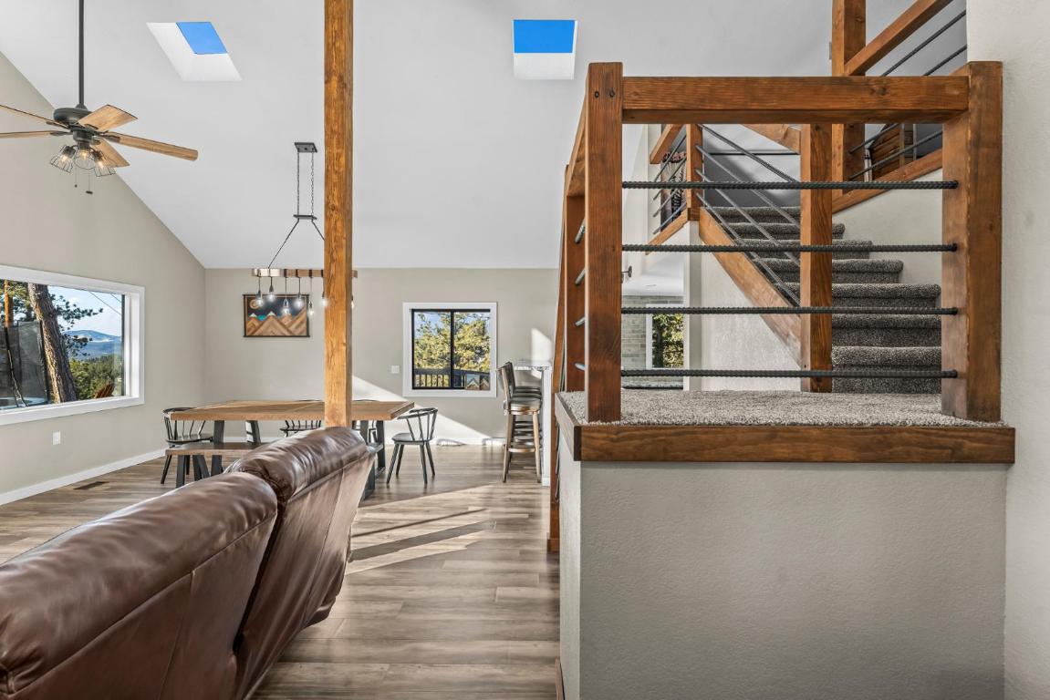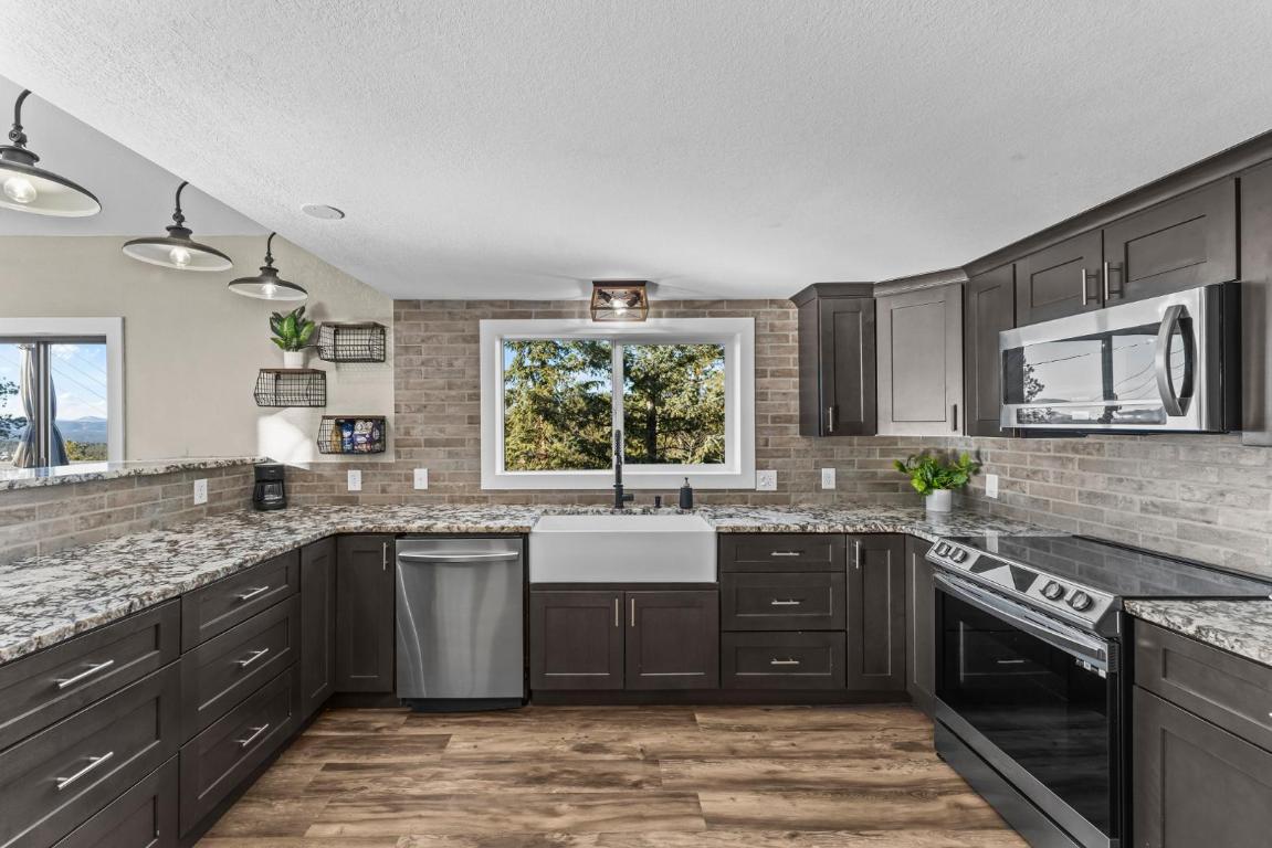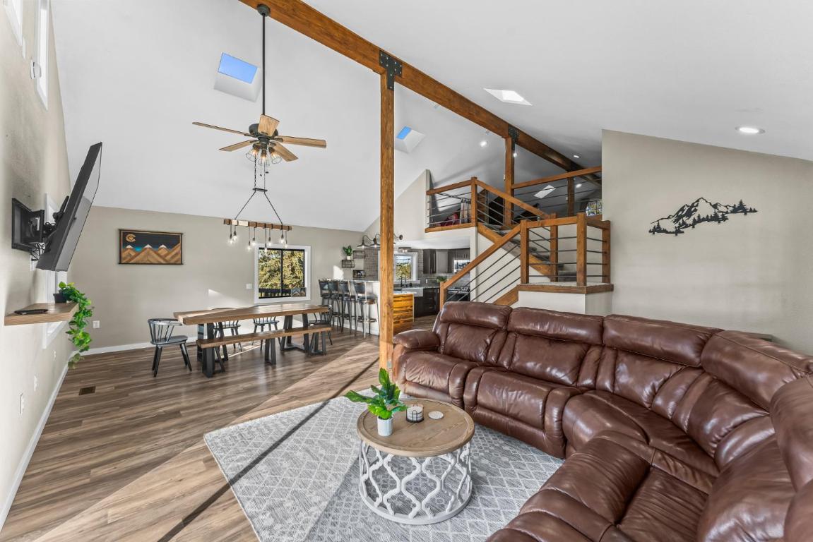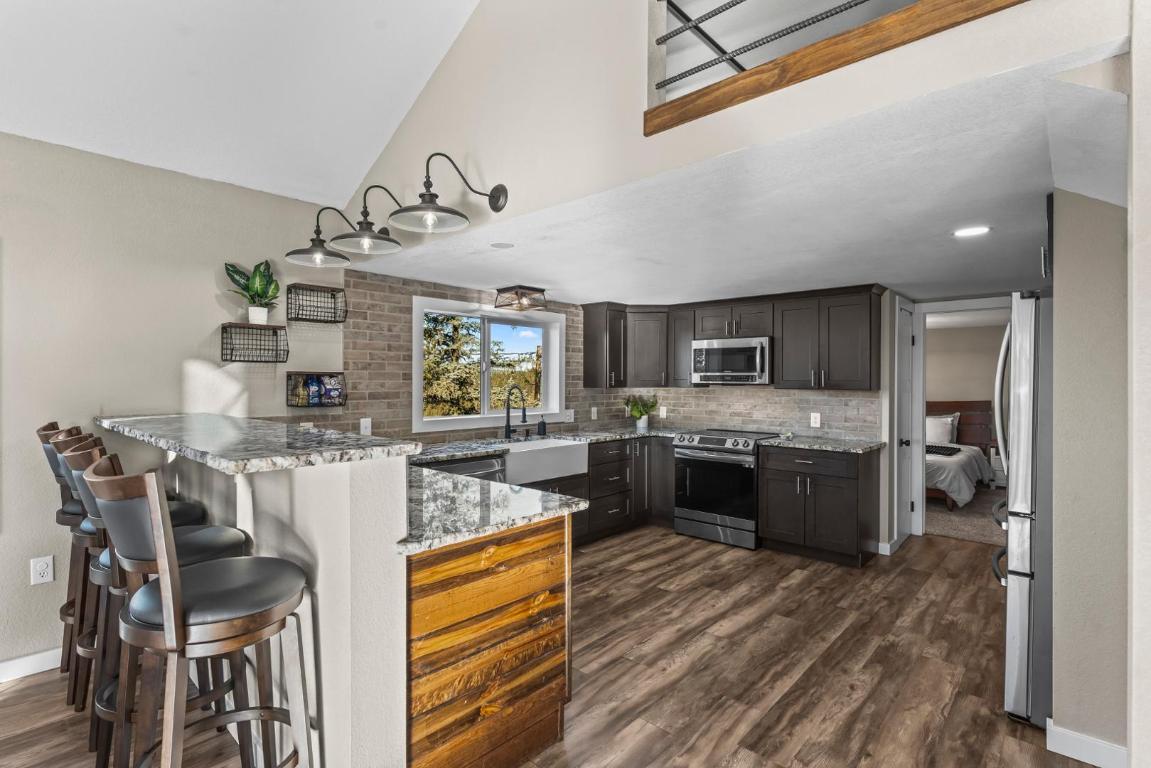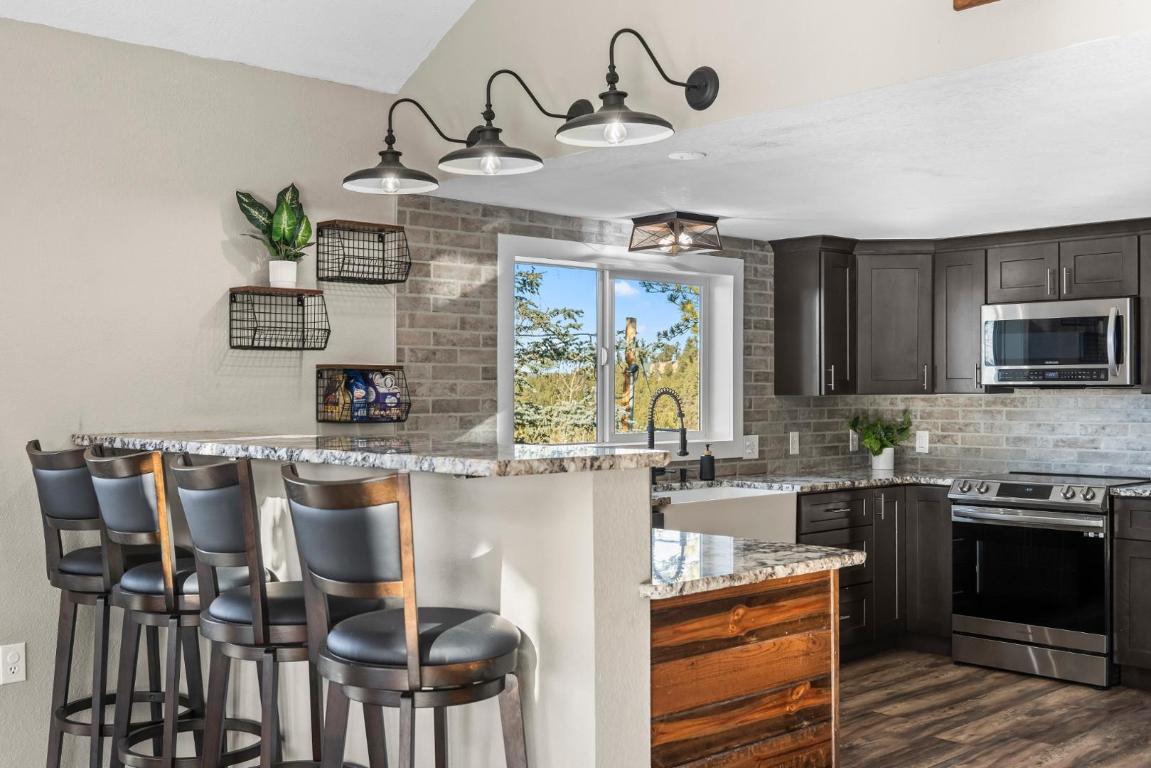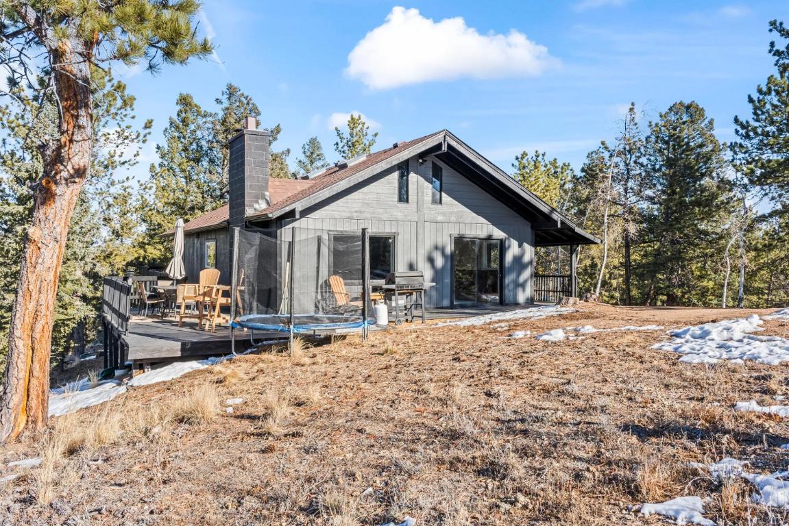 Escape to your own private mountain retreat, where breathtaking views and peaceful surroundings create the perfect place to call home. Situated on 8 scenic acres and backing to expansive ranch land, this beautifully updated property offers unmatched privacy along with sweeping views of Pikes Peak, Crystal Peak, and the surrounding mountain ranges. Inside, youll find a bright and inviting main level filled with natural light, vaulted ceilings, and an open-concept living and dining area, ideal for both relaxing and entertaining. The updated kitchen is a standout feature, complete with chiseled-edge granite countertops, a farmhouse sink, stainless steel appliances, and bar-top seating for casual dining. Step outside onto the expansive wraparound deck and take in the fresh mountain air, perfect for morning coffee, evening sunsets, or simply soaking in the incredible views. This home offers multiple main-level bedrooms and bathrooms for added convenience, while the upper level features built-in beds, perfect for guests, a creative space, or a cozy retreat. The lower level adds even more flexibility with a large open area, additional bedroom or bonus space, and the option for a separate living area with its own private entrance. Additional features include: Attached garage for storage, hobbies, or workspace. Two storage sheds for outdoor gear and equipment. Expansive outdoor space to enjoy Colorado living at its best. If youre looking for a rental that offers space, privacy, and unforgettable mountain views, this one-of-a-kind property delivers a truly special living experience.